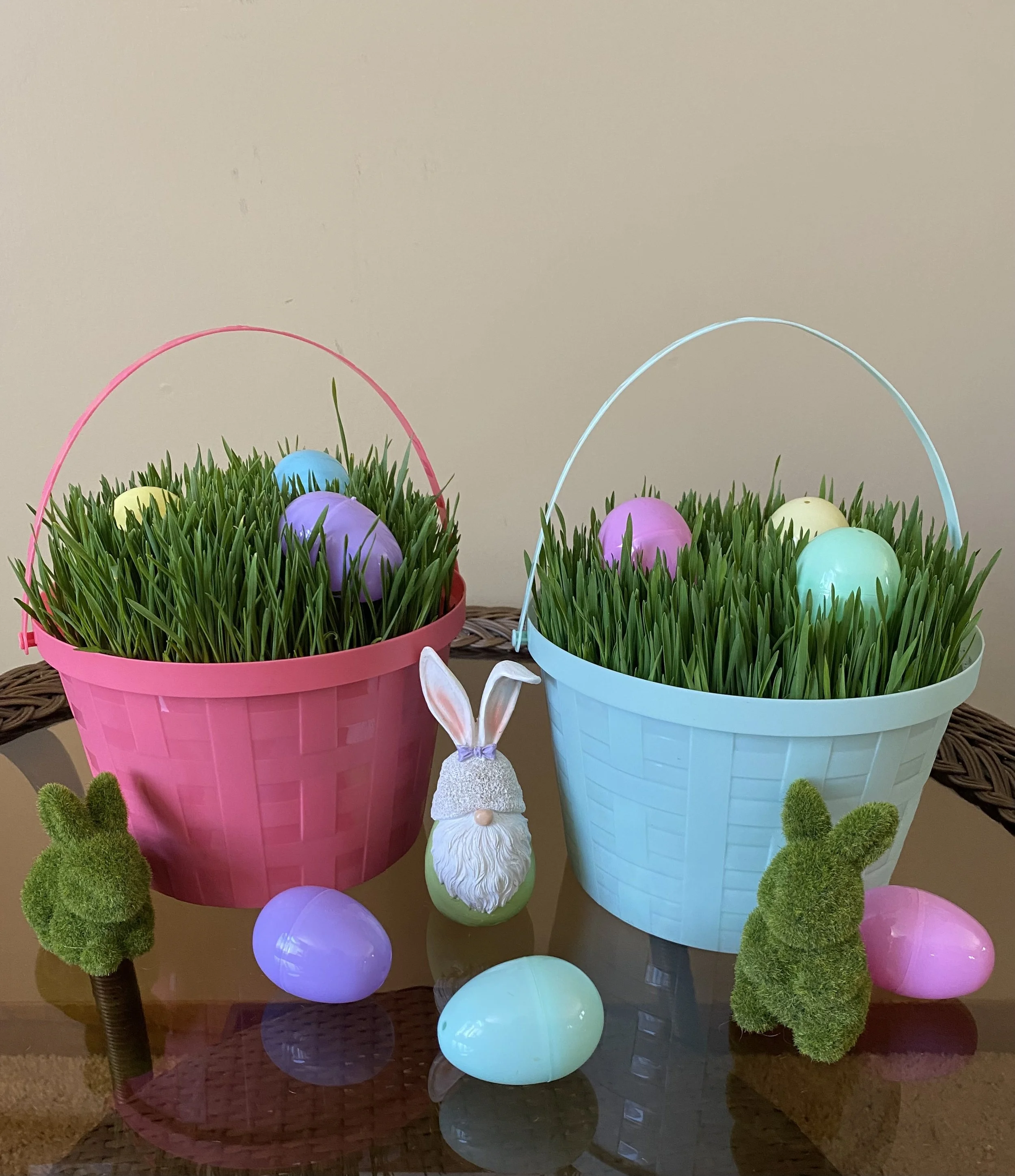 Baskets/Vessels may differ from shown in picture. Gnome, Bunnies, and Eggs not included.