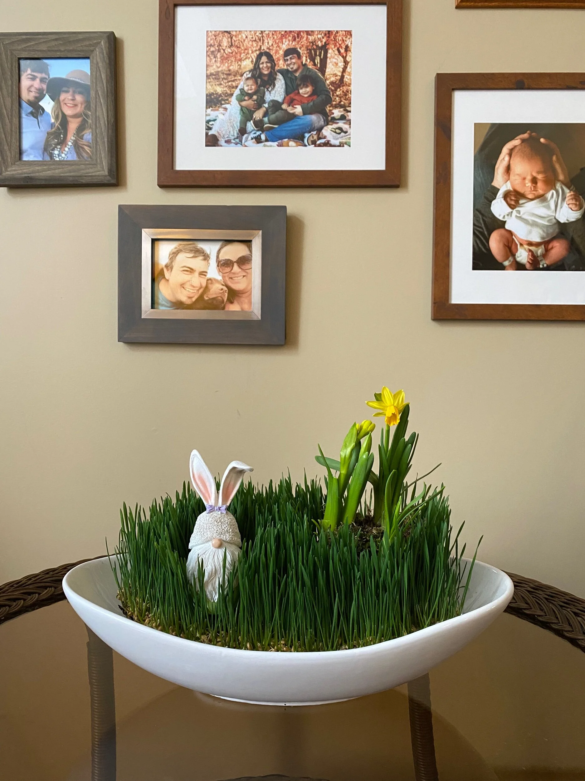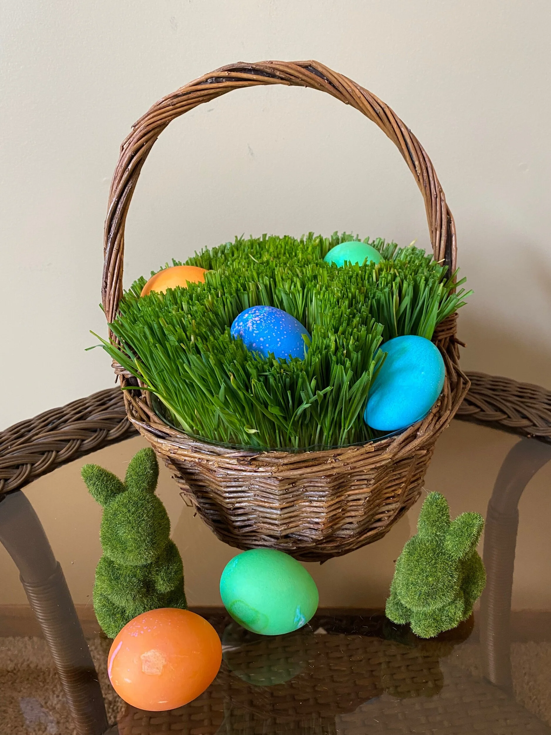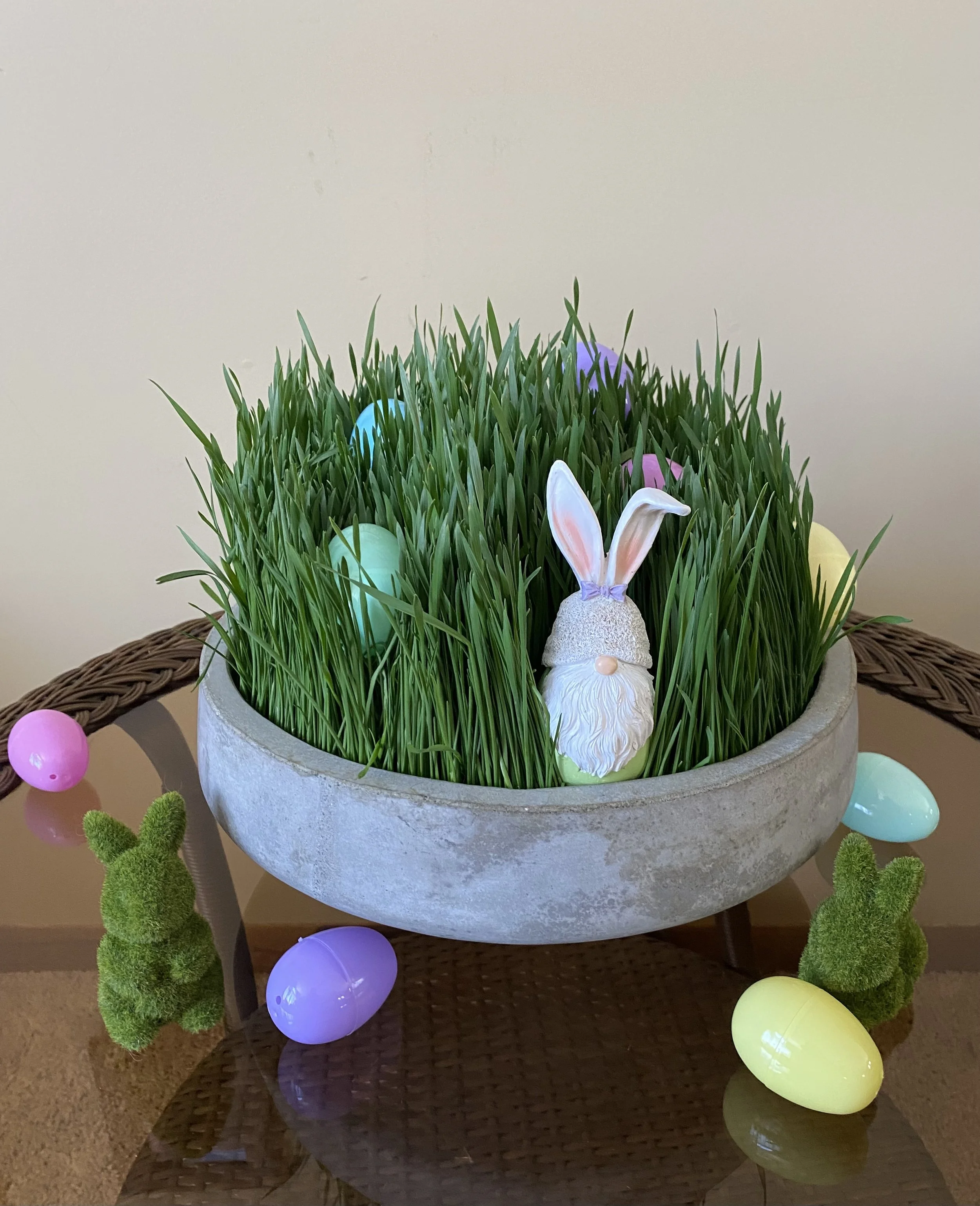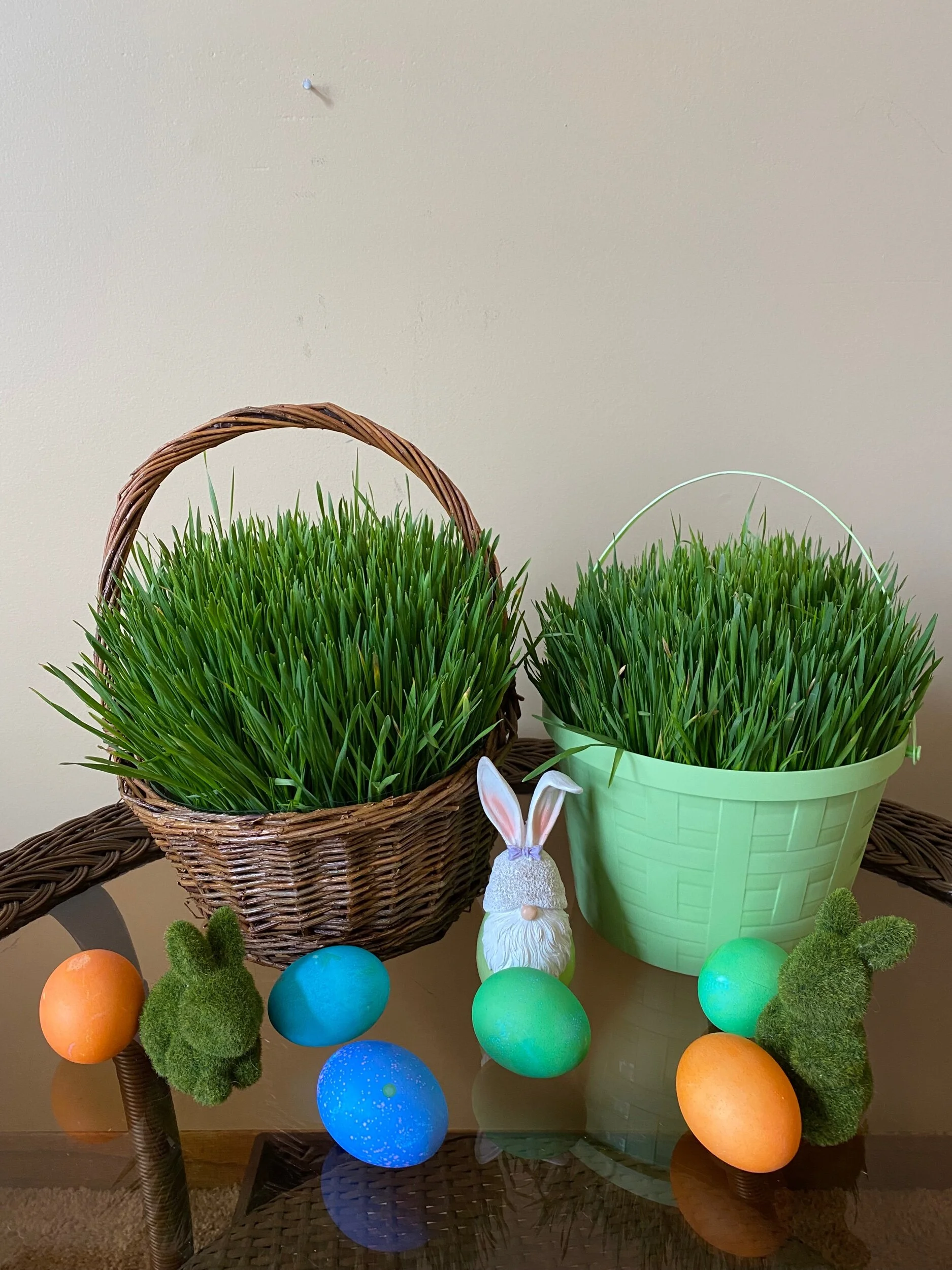 You can pick up your wheatgrass basket from our floral studio in downtown White Bear Lake on Friday, April 3rd from 9am-2pm or Saturday, April 4th from 9am-12pm